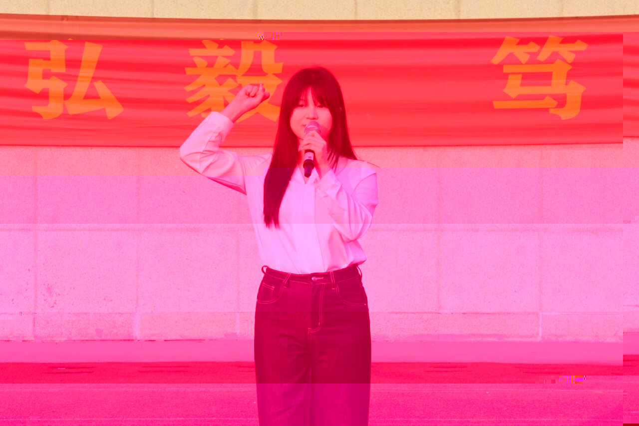 學生代表周梓涵在發言中号召同學們,将個人理想融入國家發展的宏偉藍圖。