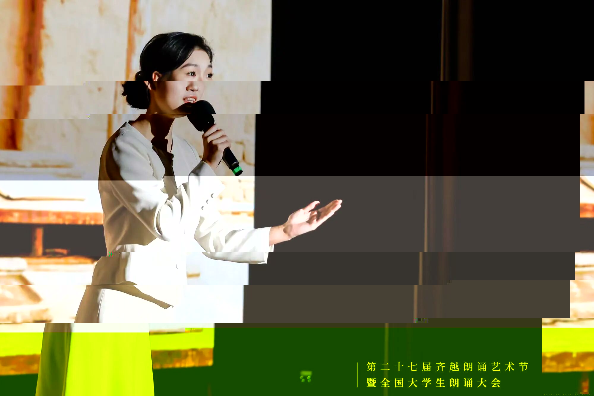 (通訊員:張韻雅)2025年11月28日,第27屆齊越朗誦藝術節暨全國大學生朗誦大會全國複選圓滿落幕。來自武漢大學、重慶大學、北京語言大學、國防大學軍事文化學院等75所高校的百餘部作品同台角逐。經過11月17日至18日專家評委的嚴格評審,最終僅有27部作品脫穎而出晉級全國決選——其中,由我院胡桐老師、蔣奕清老師指導,韋沅同學演繹的作品《父親的肖像》成功入圍,實現了我院在齊越節全國決選舞台上“零的突破”!這是我院專業教育成果的重要體現,更是全體師生共同的榮耀!