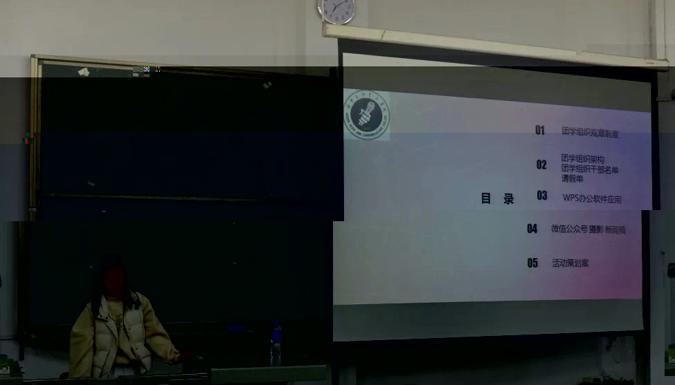 會議開始,周文儀同學對近期團學組織的工作情況做出了概括性總結,講述第八屆團學組織規章制度,并提出下階段團學組織工作規劃。接下來由孫雙超同學對wps辦公軟件的應用進行了詳細的講解,并對團學組織工作文件模闆進行了規定。随後,由劉雨琪同學講解策劃案的具體寫作流程和相關要求,并指出各部門幹事需認真了解策劃案模闆格式。唐照群同學進行了微信公衆号的排版制作、單反相機的使用、新聞稿的撰寫技巧的相關問題講解。