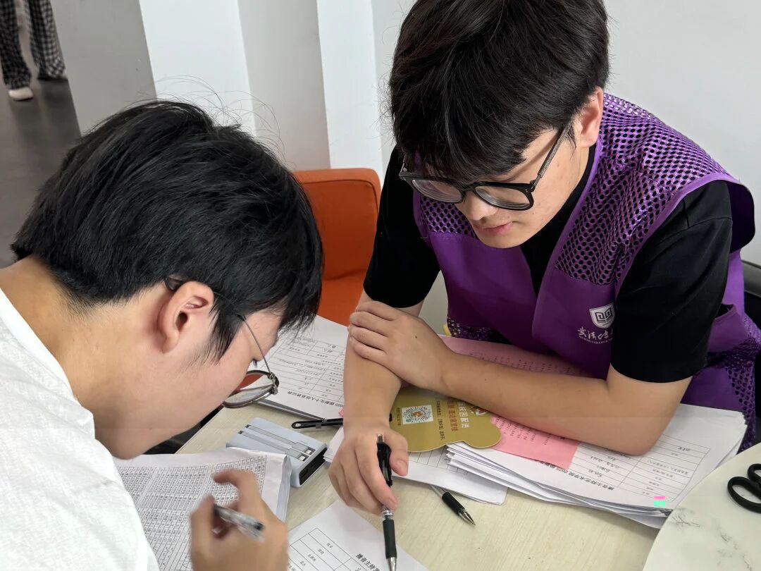 清晨的陽光剛剛灑向校園,志願者們早已在各個崗位準備就緒。校門口,志願者們高舉指示牌,耐心解答路線疑問;報到點,志願者們細心核對信息,快速辦理手續;宿舍樓下,志願者們接過沉甸甸的行囊,幫助新生運送行李。烈日下來回奔跑的身影,汗水浸濕的紫色馬甲,成為了迎新期間最溫暖的風景。
